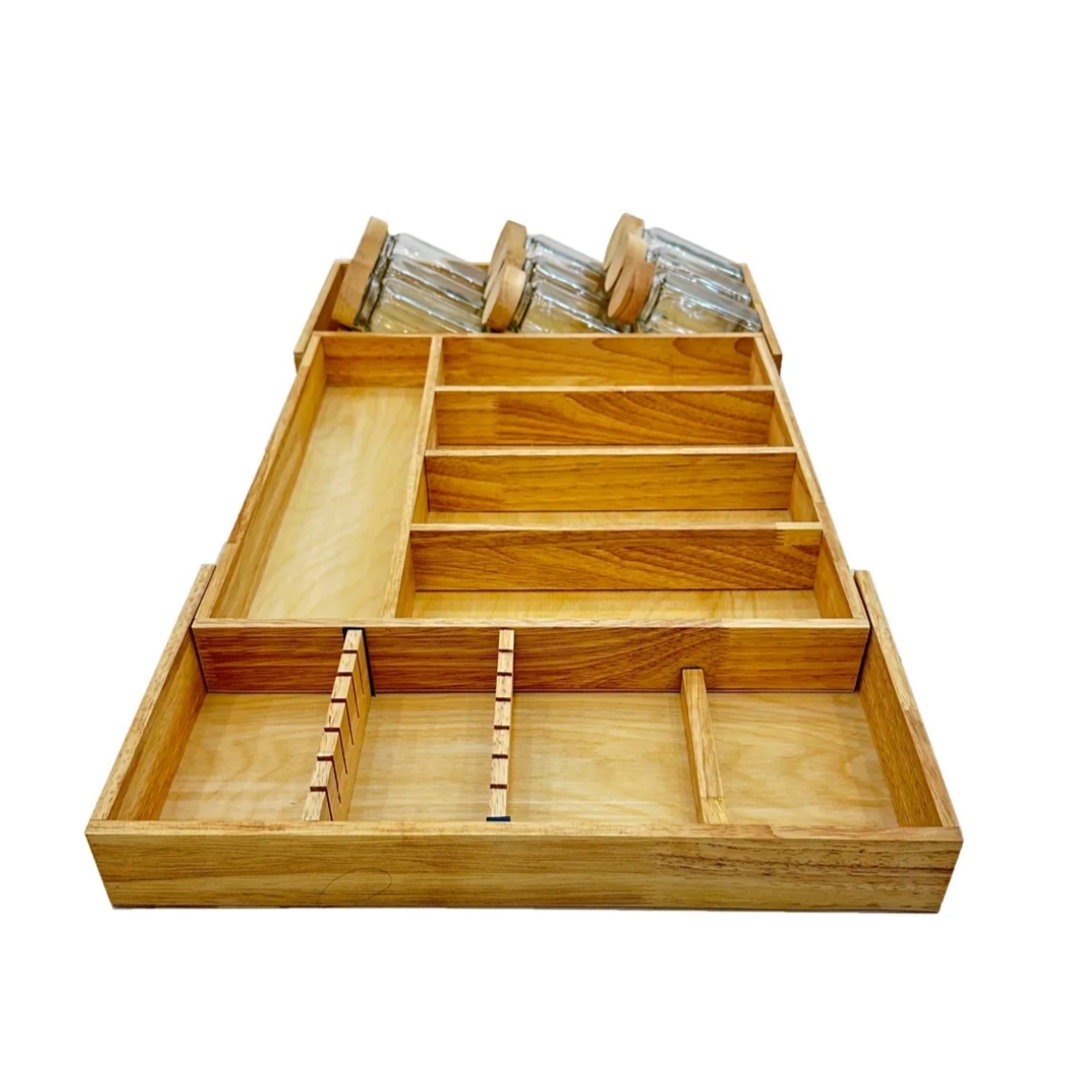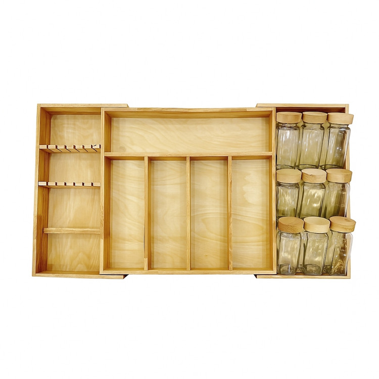 جا قاشقی چوبی که شامل ۹ عدد جا ادویه و ۳ عدد استند جای ادویه و ۹ عدد پلاستیک ادویه پاش می باشد و قابل استفاده برای جا قاشق و چاقو و لوازم آشپزخانه میباشد که سایز آن قابل تنظیم است که در حالت باز ۷۳ × ۴۱.۵ و در حالت بسته ۴۱.۵ × ۴۱.۵ میباشد