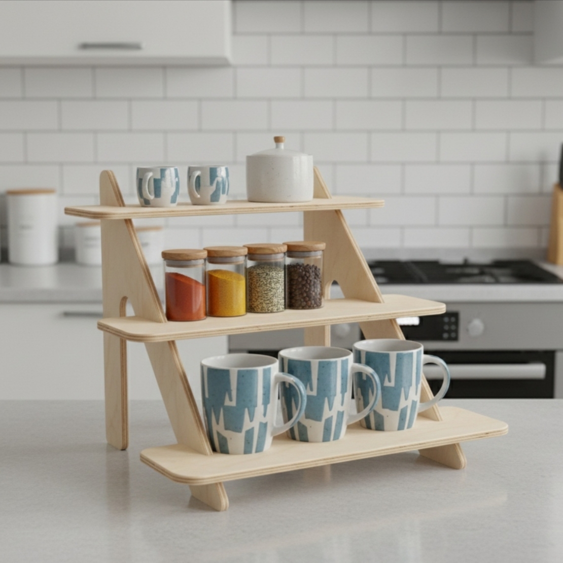 استند چوبی سهطبقه چندمنظوره دارای فضای کافی برای نگهداری انواع ادویهجات، سسها، شیشههای کوچک، لوازم آرایشی، یا ابزار هنری. جنس کالا از پلی وود درجه یک میباشد . ابعاد طول 30cm .عرض 25cm. ارتفاع 25cm