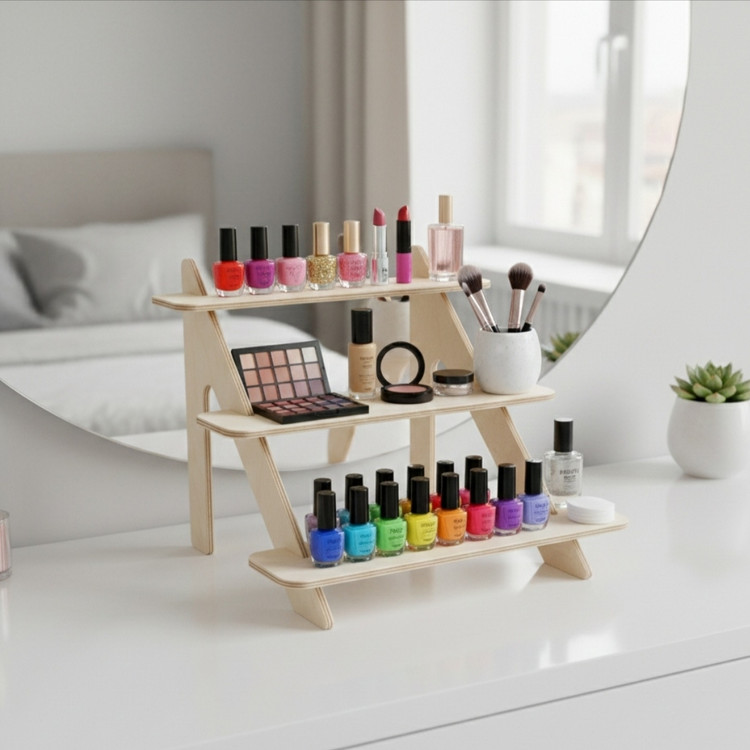 استند چوبی سهطبقه چندمنظوره دارای فضای کافی برای نگهداری انواع ادویهجات، سسها، شیشههای کوچک، لوازم آرایشی، یا ابزار هنری. جنس کالا از پلی وود درجه یک میباشد . ابعاد طول 30cm .عرض 25cm. ارتفاع 25cm